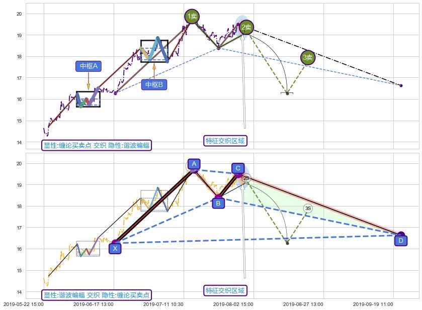 ➣ 缠论买卖点:猜想2卖持续蓄力下跌至3卖 → 下跌 → 风险信号 → 小趋势跟踪