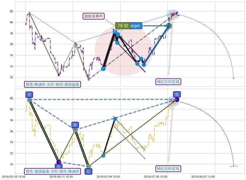 ➢ 降旗形属【短级别信号事件】谐波鲨鱼属【长级别信号事件】长短周期组合信号事件, 短长事件长度比28.43%