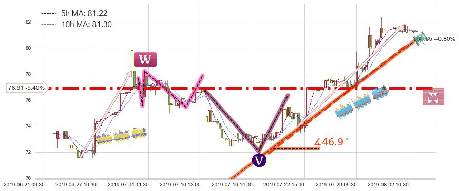 ➢ 预测:2019-08-05 12:00,【小幅回撤】稳定目前上涨趋势的前提下,预测价格:81.01