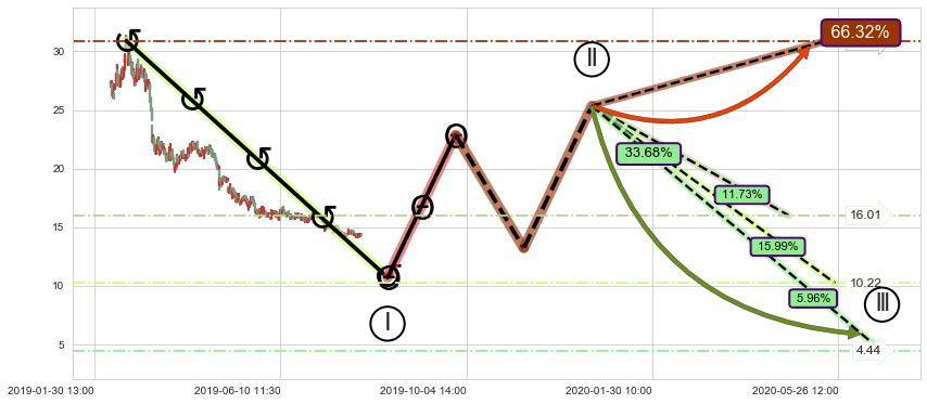 ➢ 循环浪继续向下【最高】位置(04-24:10, 16.01),匹配聚类样本比例34.83%, 可能性概率11.73%