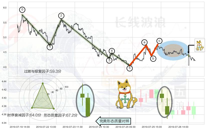 ➢ 🕰 价格走势在2019-07-25 15:00:00至2019-07-26 09:30:00期间形成下跌孤独十字星,残存影响值:-4.43