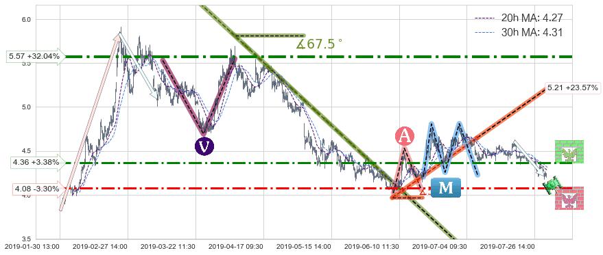 ♞ 20小时均线:4.27,30小时均线:4.31→ 快线<慢线