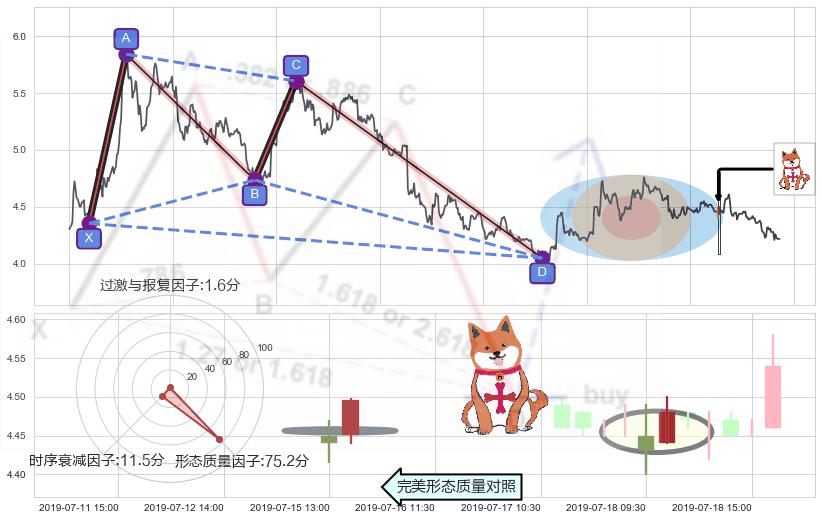 ➢ 🕰 价格走势在2019-07-29 00:00:00至2019-07-29 00:00:00期间形成单针探底(定海神针),残存影响值:6.74
