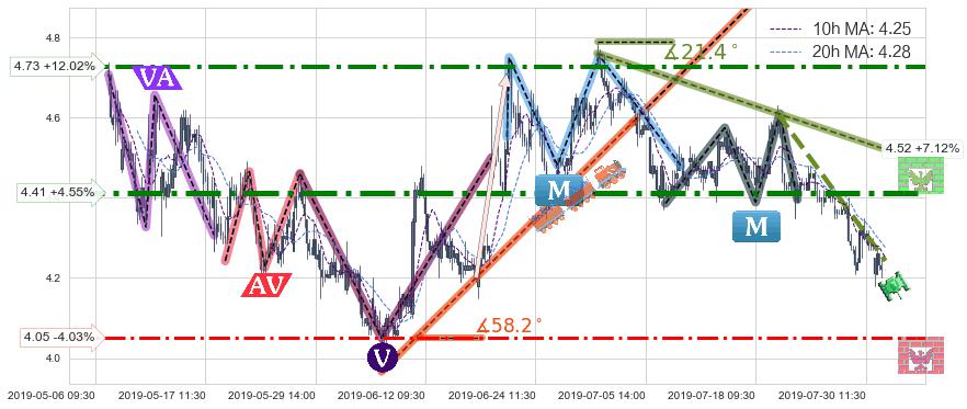 ♘ 阻力价格位4.73,可信任强度74.56%,距离最后交易2019-07-31 15:00形成的收盘价格4.22相差 +12.02%