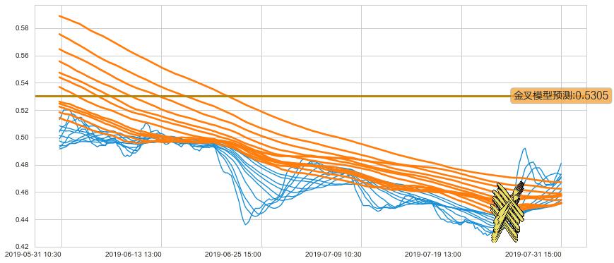 ➢ 60小时均线于(07-25 10:30: 0.44233)形成【金叉】基于【金叉历史模型】预测金叉后最高波峰价格: 0.5198, 金叉后最高价格0.5000,尚未达到预测最高波峰价格, 预期继续上涨