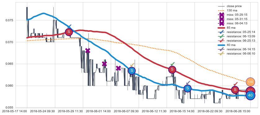 05-08 14:00至06-10 11:30 慢线与快线呈空头排列, 慢线与快线接触少,无缠绕