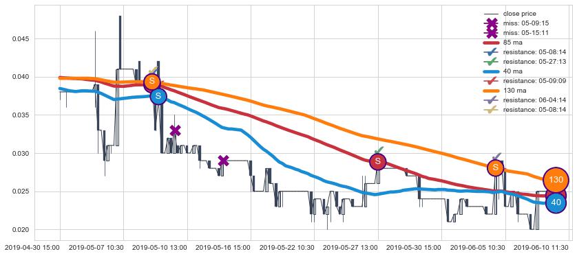 📝 多条均线形成死叉后走势最低价格达到: 0.0170000