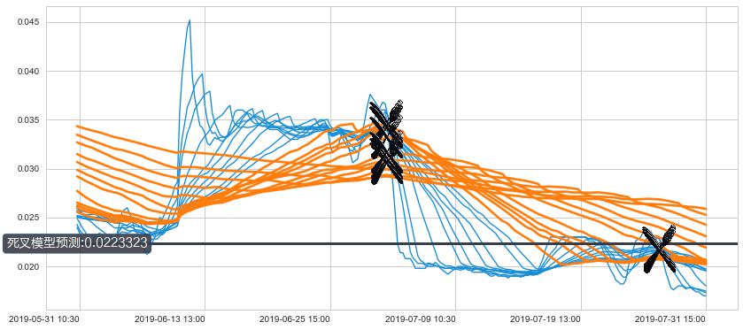 ➢ 120小时均线于(07-02 13:00: 0.0315667)形成【死叉】基于【死叉历史模型】预测死叉后最低波谷价格: 0.0263397, 死叉后最低价格0.0170000,已经下跌超出预测最低波谷价格, 预期反弹