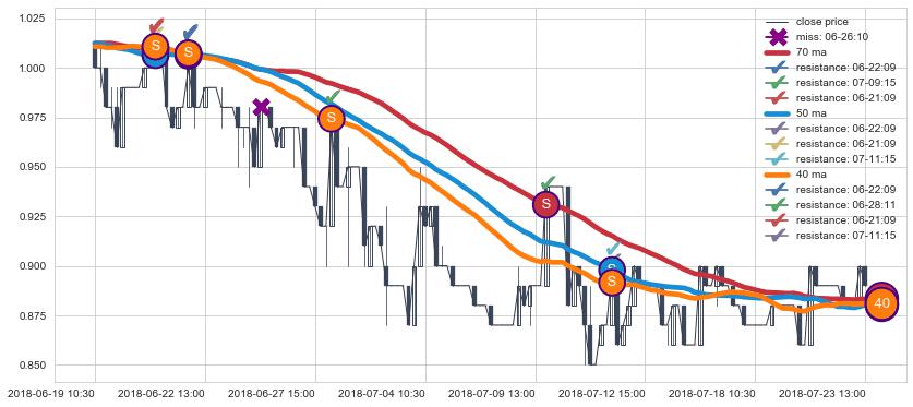 ➣ 70小时均线于(07-05 14:00: 0.44436)形成【死叉】基于【死叉历史模型】预测死叉后最低波谷价格: 0.40452, 死叉后最低价格0.35000,已经下跌超出预测最低波谷价格, 预期反弹