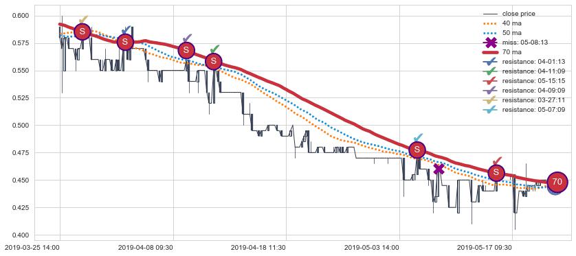 📝 多条均线形成死叉后走势最低价格达到: 0.35000