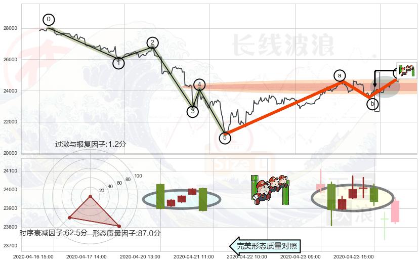 ➢ 🕰 价格走势在2020-04-23 10:00:00至2020-04-23 15:00:00期间形成下降三部曲(降势三鹤),残存影响值:-3.16