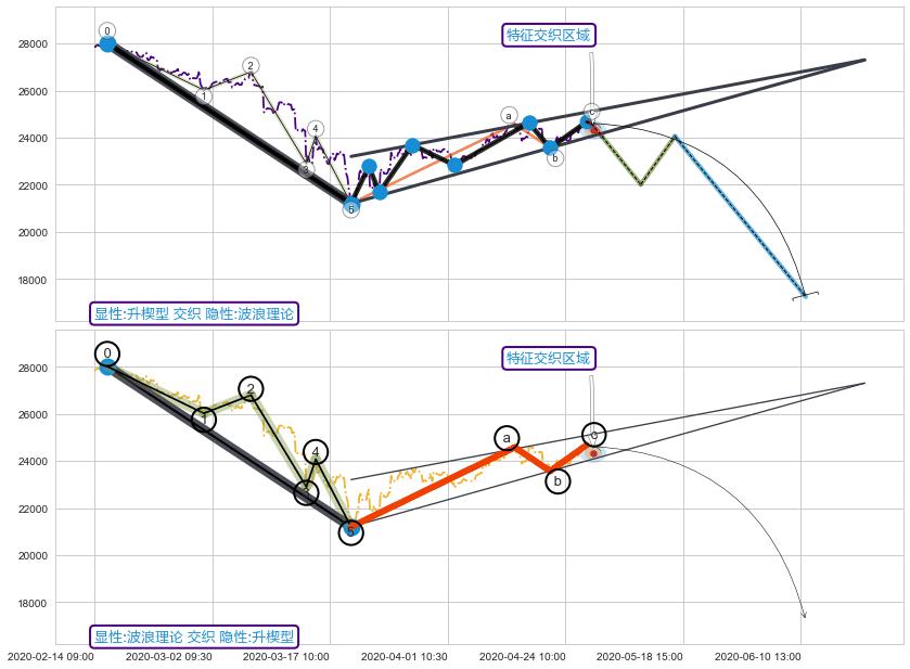 ➣ ['回调abc识别为: 【锯齿型调整浪】 ', '锯齿型:子浪535结构 ⓑ点振幅较小,ⓒ点继续发力远超ⓐ点结束位置']