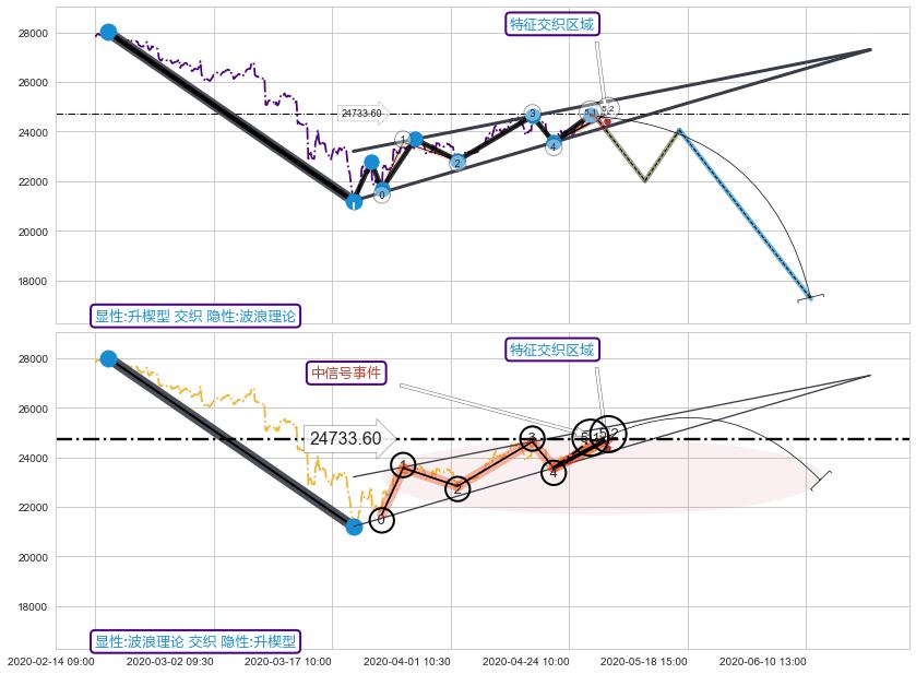 ➣ 下降插入线(坠落线) + 波浪理论上涨浪临近浪5回调点信号叠加后【信号初始稳固度】极低,【看空】信号叠加【可信度影响极小】