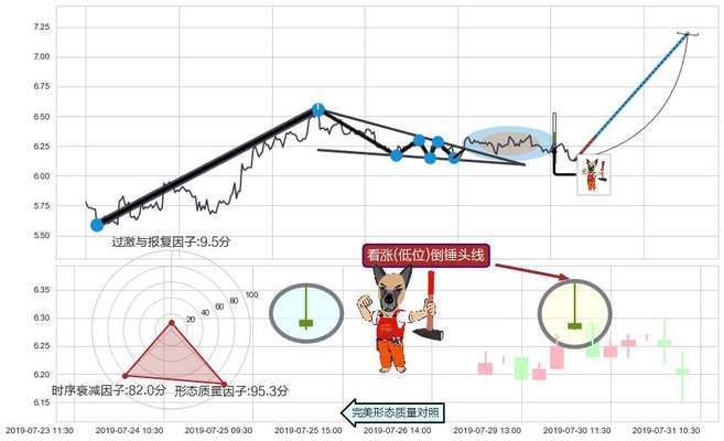 ➢ 🕰 价格走势在2019-07-30 09:30:00至2019-07-30 09:30:00期间形成看涨(低位)倒锤头线,残存影响值:4.33