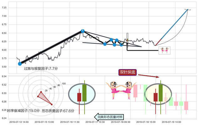 ➢ 🕰 价格走势在2019-07-18 15:00:00至2019-07-19 09:30:00期间形成双针探底,残存影响值:1.96