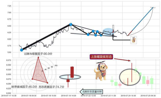 ➢ 🕰 价格走势在2019-07-23 15:00:00至2019-07-24 09:30:00期间形成上涨螺旋桨形态,残存影响值:5.85