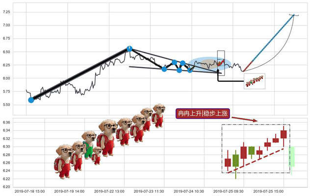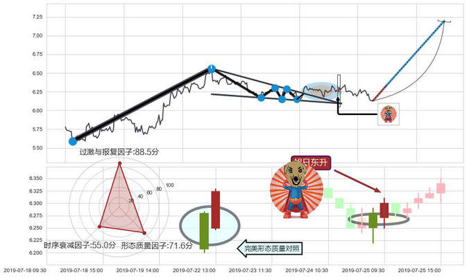 ➢ 🕰 价格走势在2019-07-24 15:00:00至2019-07-25 09:30:00期间形成旭日东升,残存影响值:6.61