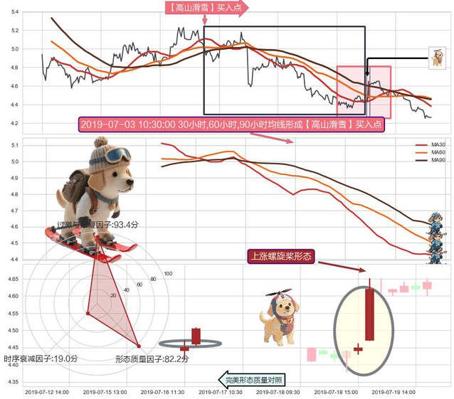➢ 上涨螺旋桨形态 + 【高山滑雪】买入点高山滑雪见底拐点买入点信号叠加后【反向回撤率】极高,【看多】信号叠加【存续影响极小】