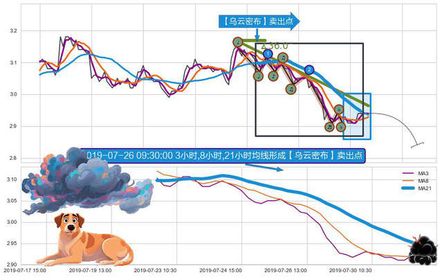 ➣ 🕰 价格走势在2019-07-30 11:30:00至2019-07-31 15:00:00期间形成【乌云密布】卖出点,残存影响值:-30.98