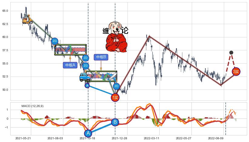 ➣ 缠论买卖点:下降缠:临近3买-猜想击穿突破3买后延续上涨趋势(大周期趋势均值回复后小周期持续趋势跟踪)