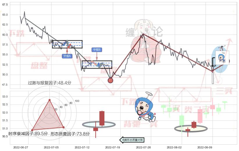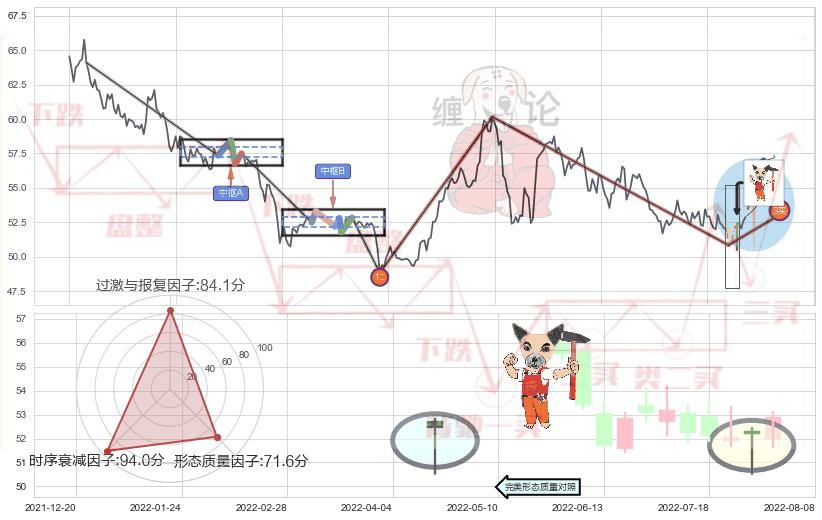 从2022-02-17至2022-08-12,共包含120个交易日,阶段股价下跌-11.71%,阶段股价变动位移路程比: 1 : 10,下跌趋势角度: 43.6