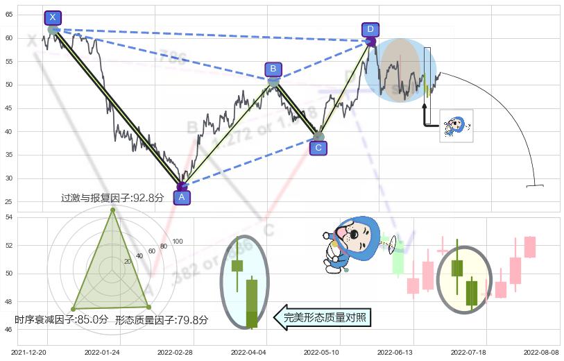 ➢ 下跌孕十字星 🔜 谐波伽利d拐点下跌阻力 综合量化分数:49.60 【中性】