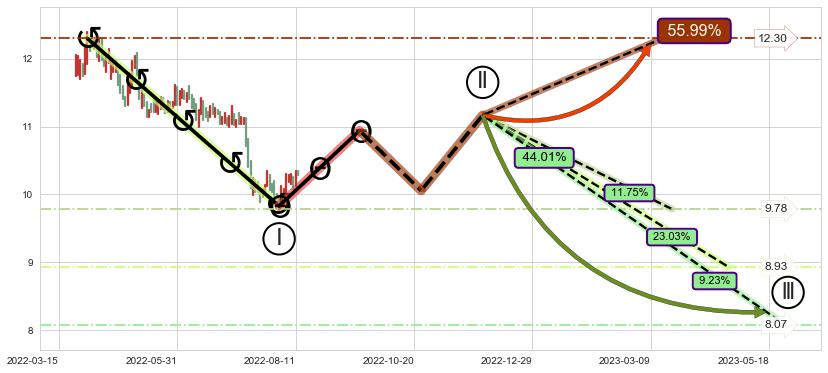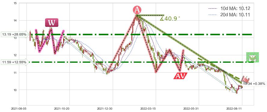 ♘ 阻力价格位13.19,可信任强度87.34%,距离最后交易2022-08-12形成的收盘价格10.30相差 +28.05%