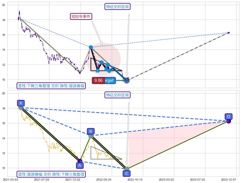 ➢ 下降三角整理属【短级别信号事件】谐波赛福属【长级别信号事件】长短周期组合信号事件, 短长事件长度比23.28%