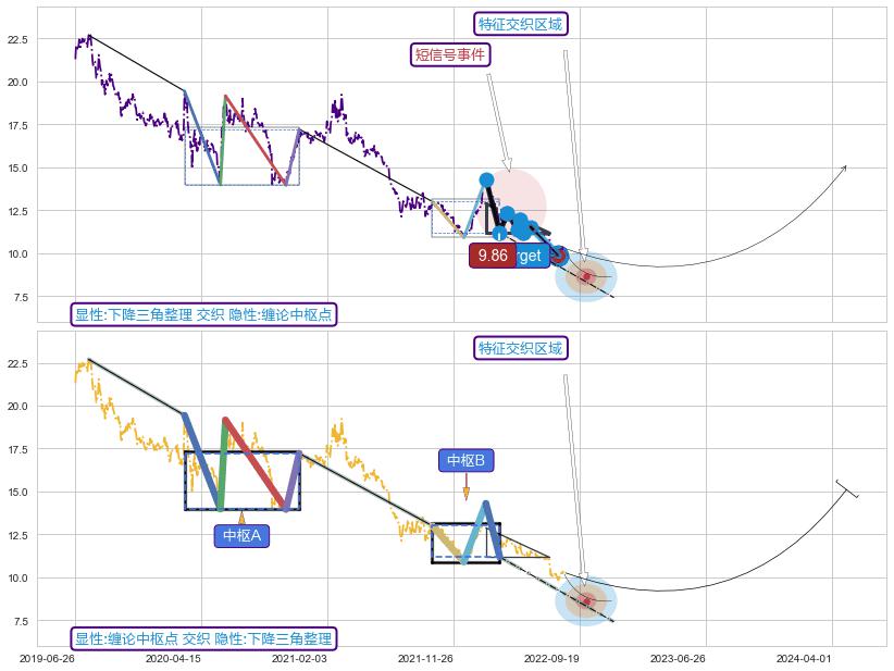 ➢ 下降三角整理属【短级别信号事件】缠论中枢点属【长级别信号事件】长短周期组合信号事件, 短长事件长度比10.74%