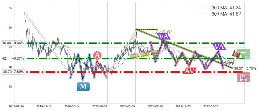 ♘ 支撑价格位38.70,可信任强度93.67%,距离最后交易2022-08-12形成的收盘价格42.00相差 -7.85%