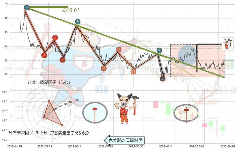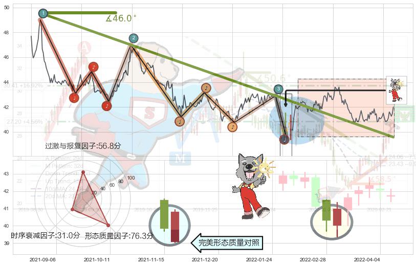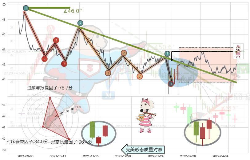 ➢ 2021-03-10-2022-05-19下跌趋势存在反转上涨[机会],其原下跌趋势的阻力位(39.57)已被突破[强支撑信号],原下跌趋势角度: 46.0˚