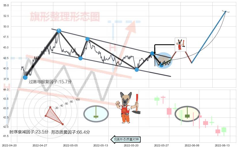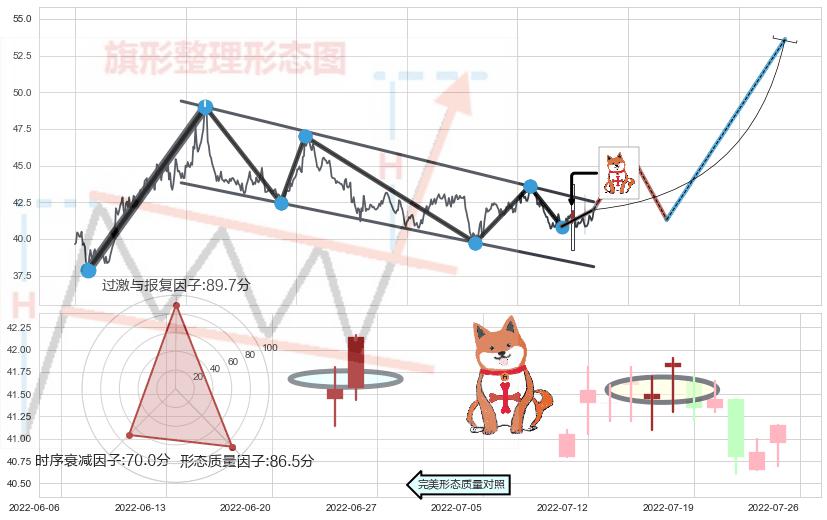 ➢ 上涨螺旋桨形态 🔜 降旗形临近阻力猜想转换支撑上涨 综合量化分数:51.21 【中性】