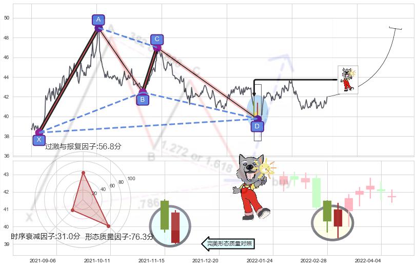 ➢ 曙光初现形态 🔜 谐波伽利d拐点上涨支撑 综合量化分数:54.61 【偏多】