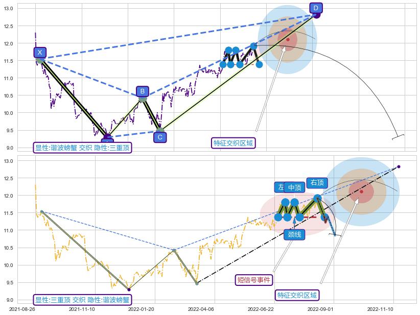 ➢ 三重顶属【短级别信号事件】谐波螃蟹属【长级别信号事件】长短周期组合信号事件, 短长事件长度比17.24%
