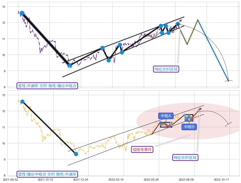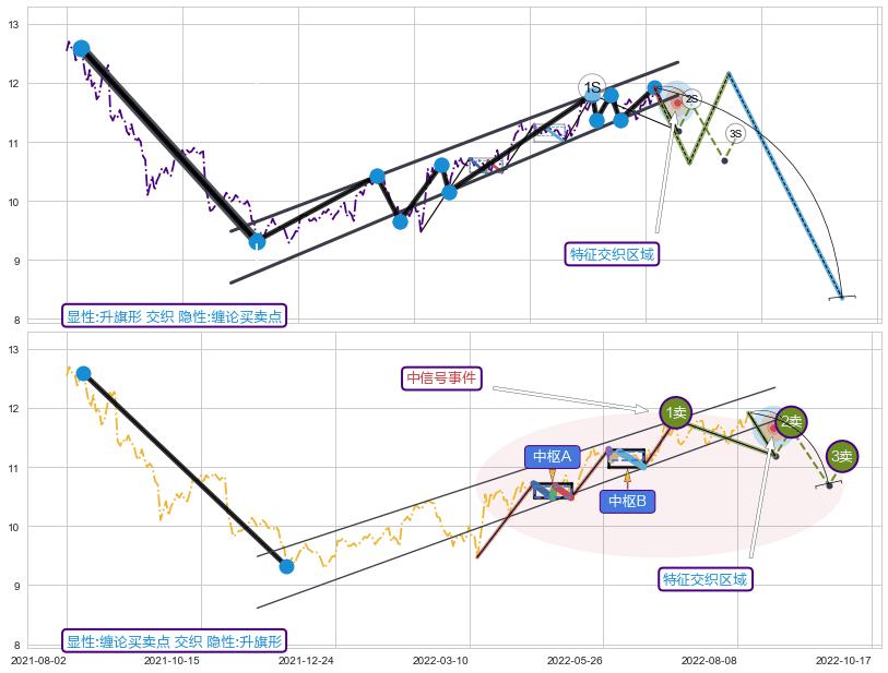 ➣ 缠论买卖点:猜想2卖持续蓄力下跌至3卖 → 下跌 → 风险信号 → 小趋势跟踪
