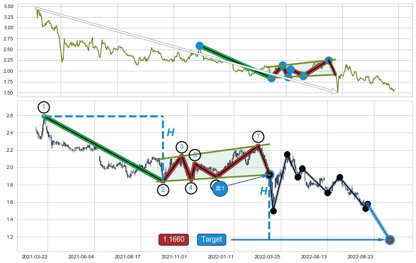 ➣ 最小中继整理跌幅→𝐇: 0.7500 (𝐇旗杆的长度:旗杆起点→顶点)