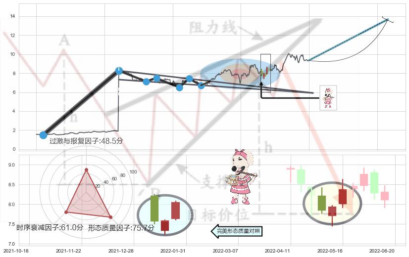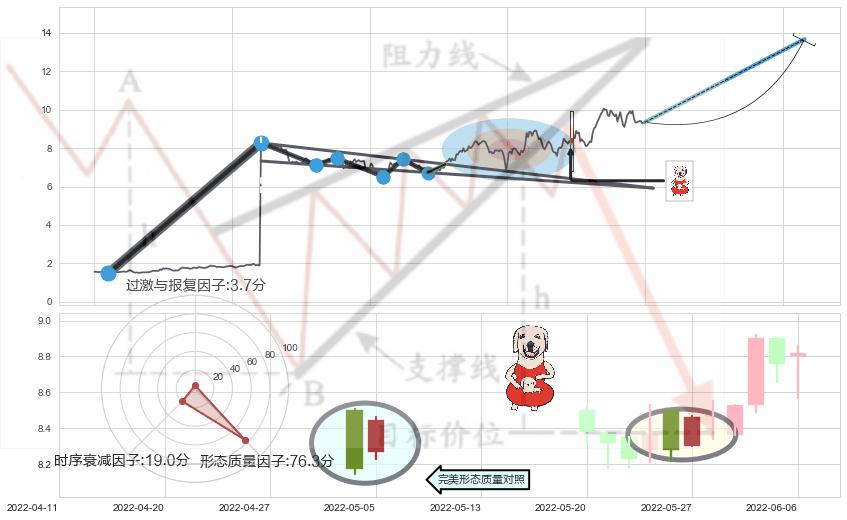 ➢ 🕰 价格走势在2022-06-14至2022-06-14期间形成锤头线(锤子线),残存影响值:1.94