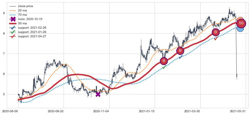 📝 多条均线形成死叉后走势最低价格达到: 5.31