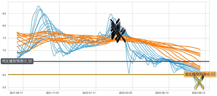 ➣ 120小时均线于(2022-03-03: 7.56)形成【死叉】基于【死叉历史模型】预测死叉后最低波谷价格: 5.69, 死叉后最低价格5.31,已经下跌超出预测最低波谷价格, 预期反弹