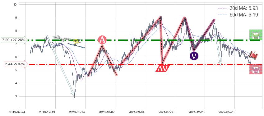 ♘ 阻力价格位7.29,可信任强度89.81%,距离最后交易2022-08-12形成的收盘价格5.73相差 +27.26%