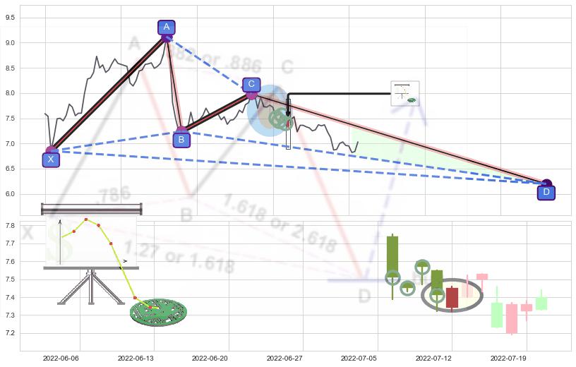 ➣ D点拟合预测价格6.20,距离最后交易收盘价格7.03相差 -11.85%