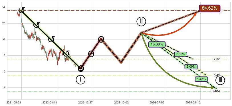 ➣ AI预测: 假定反转启动后, 第❸目标位置(2023-02-15, 9.12)