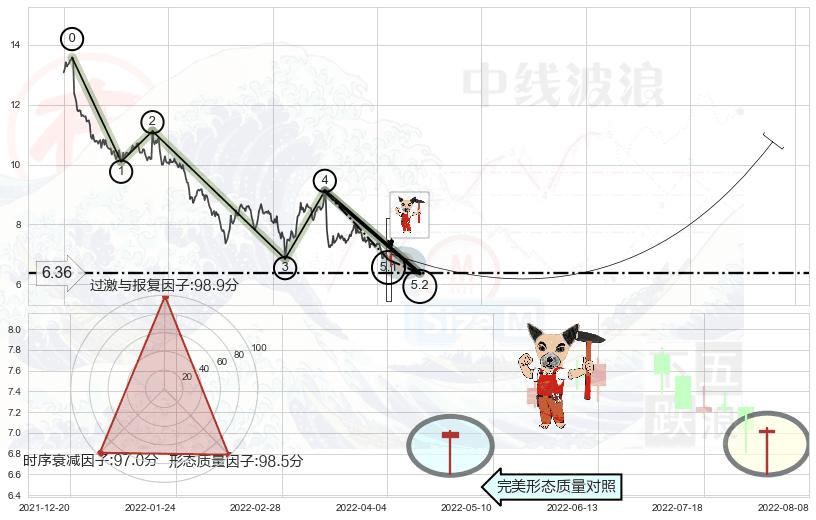➣ 5.1: 预测当前第5浪位置(2022-08-10, 6.82),仍然有下跌空间