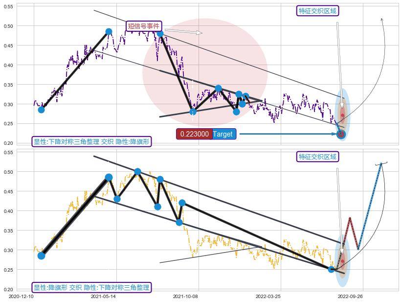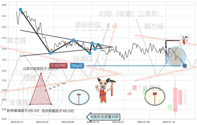 ➢ 【卖1】: 激进型 卖点→(2022-01-17: 0.30300 )形成突破下降【对称】三角形整理【整理】形态