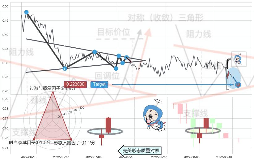 ➢ 锤头线(锤子线) 🔜 下降对称三角整理临近target支撑拐点上涨 综合量化分数:51.04 【中性】