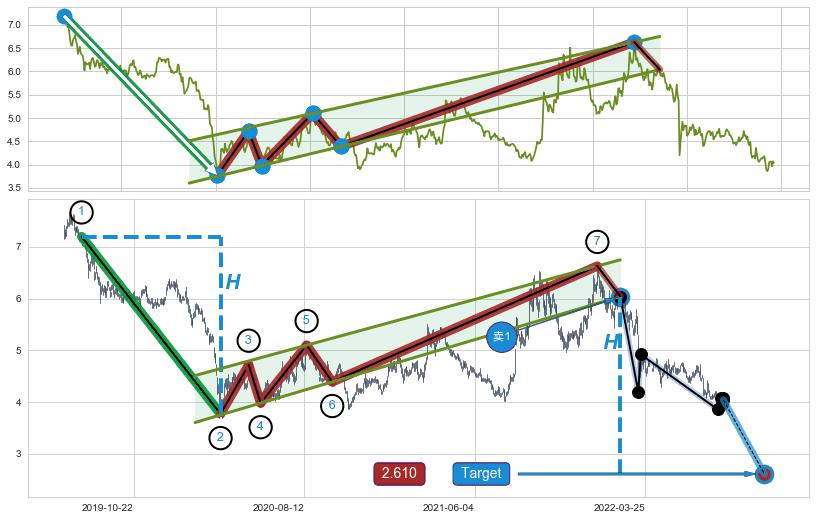 ➢ 【已确认突破】升⚑旗形 起点:2019-07-25,突破点:2022-02-14,形态共633交易日