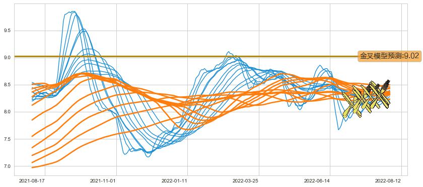 ➢ 70小时均线于(2022-08-02: 8.29)形成【金叉】基于【金叉历史模型】预测金叉后最高波峰价格: 9.31, 金叉后最高价格8.56,尚未达到预测最高波峰价格, 预期继续上涨