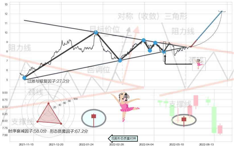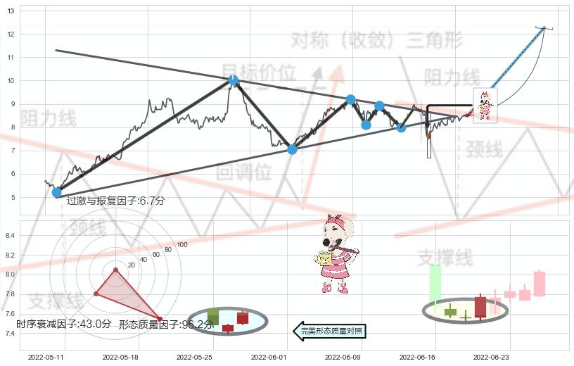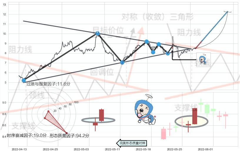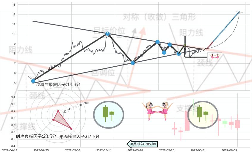 ➢ 【买1】: 激进型 买点 →(2022-05-27: 8.75 )形成突破上升【对称】三角形整理【整理】形态