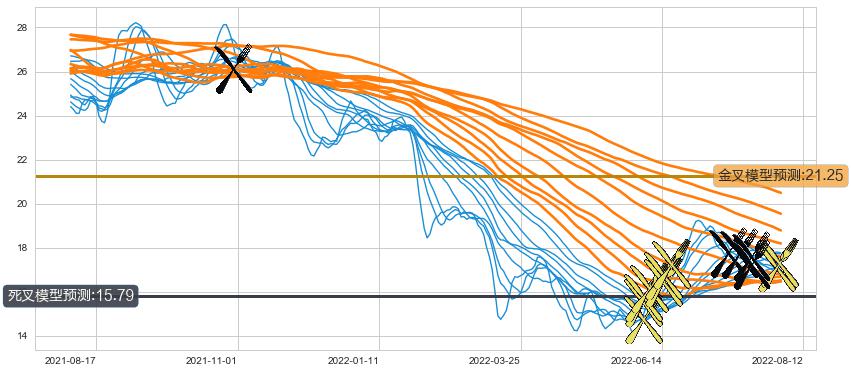➢ 40小时均线于(2022-07-28: 17.55)形成【死叉】基于【死叉历史模型】预测死叉后最低波谷价格: 15.02, 死叉后最低价格16.16,尚未达到预测最低波谷价格, 预期继续下跌