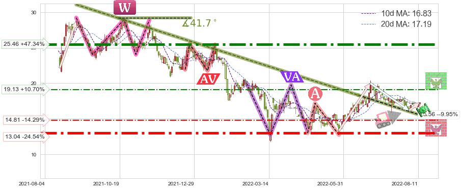 ♘ 阻力价格位19.13,可信任强度48.54%,距离最后交易2022-08-12形成的收盘价格17.28相差 +10.70%